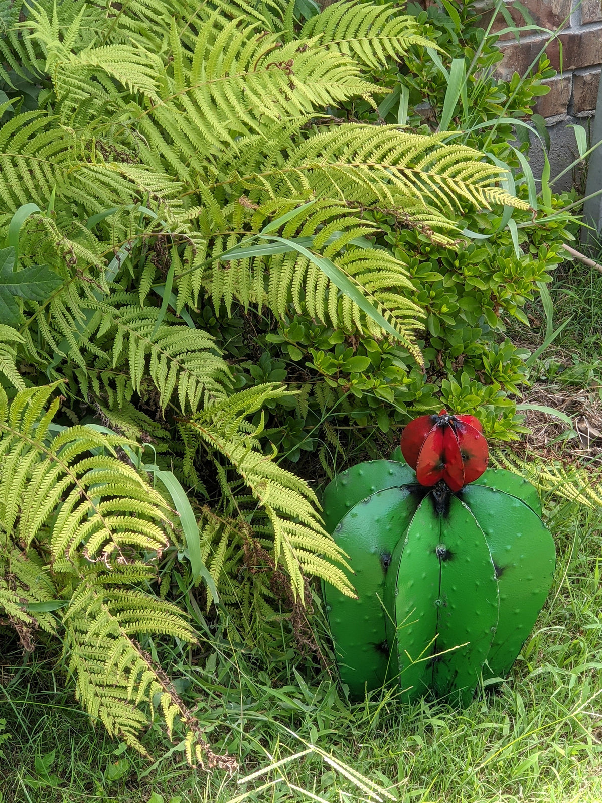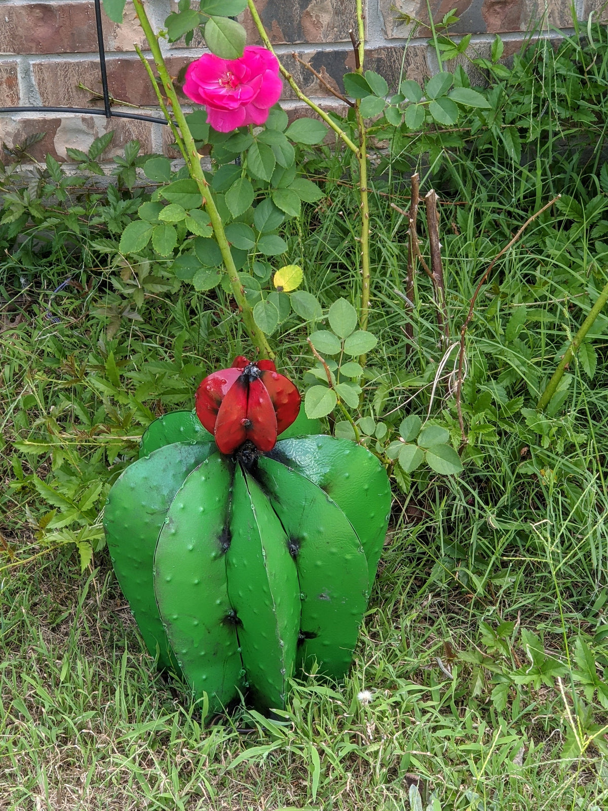 > Super Cute Metal Cactus Yard Decor with Red Flower