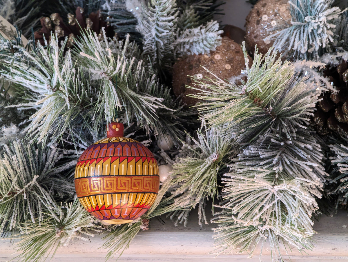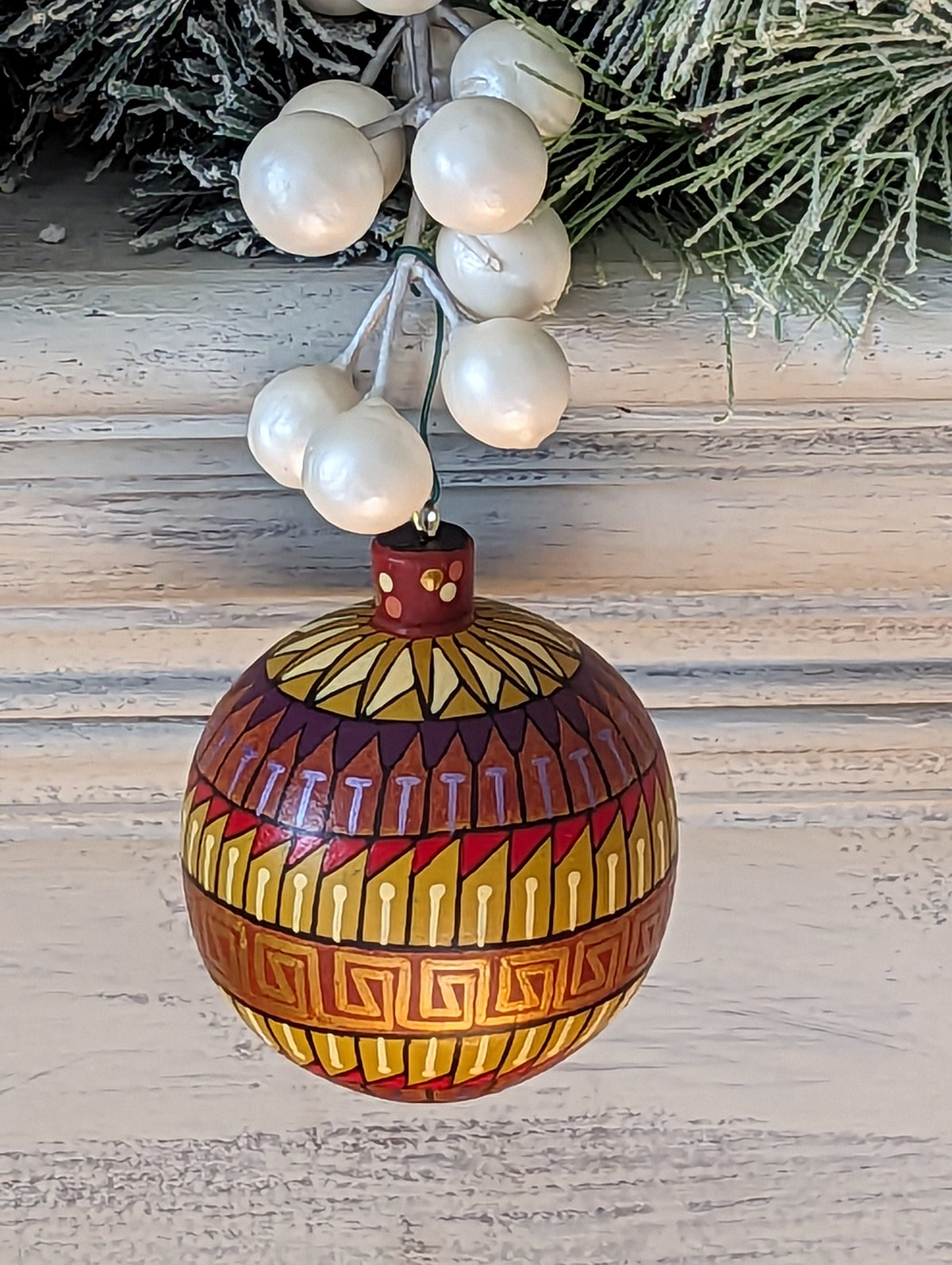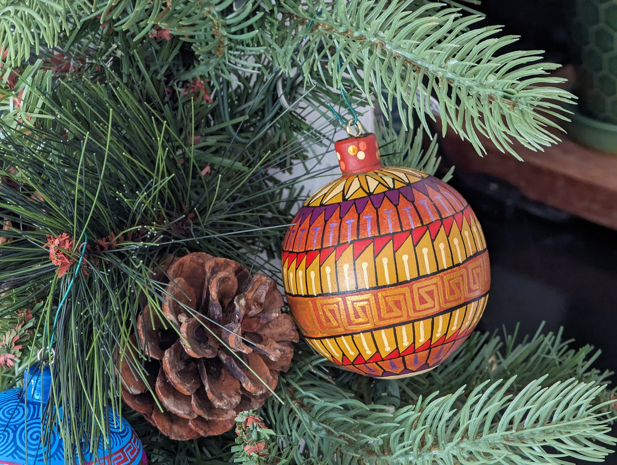 Christmas Tree Ornaments, Hand Painted Wood Ornament for Christmas Tree is Mexican Christmas Decor of festive holiday patterns & bold colors
