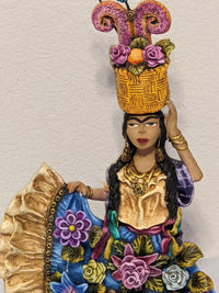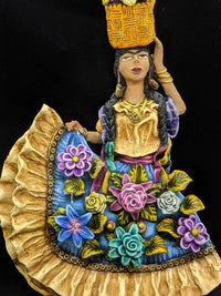> This gorgeous handmade Oaxacan Woman with Flowers is original art in clay by Jose Juan Garcia Aguilar.