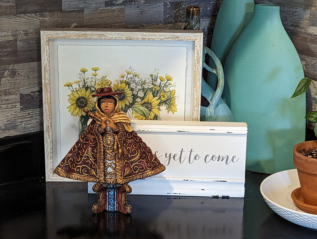 Pilgrim Mexican Art, Handmade Sculpture from Oaxaca Mexico, Shelf Decor / Home Decor, Original Art, Handpainted Figurine