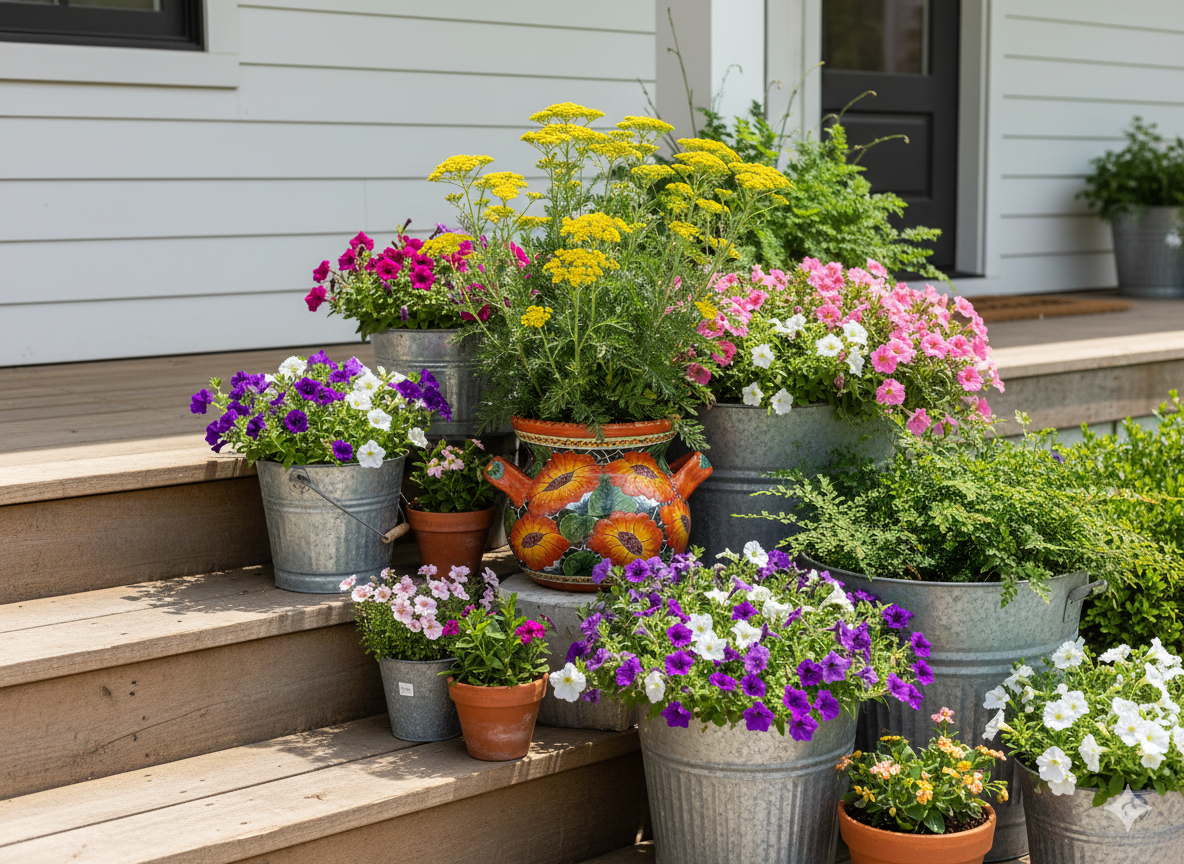 This round-handled Planter will bring a BOLD PUNCH of COLOR to enhance your yard or home decor. :)