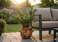 > 10.5" Round Orange Poppies Planter Ceramic Flower Pot, Handmade Mexican Talavera Pottery Outdoor Garden Decor or Indoor Home Decor, Unique Gift