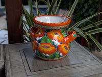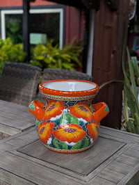 Orange Poppies Ceramic Flower Pot is 10.5 inch Round Handmade Mexican Talavera Pottery, Outdoor Garden Decor or Indoor Home Decor